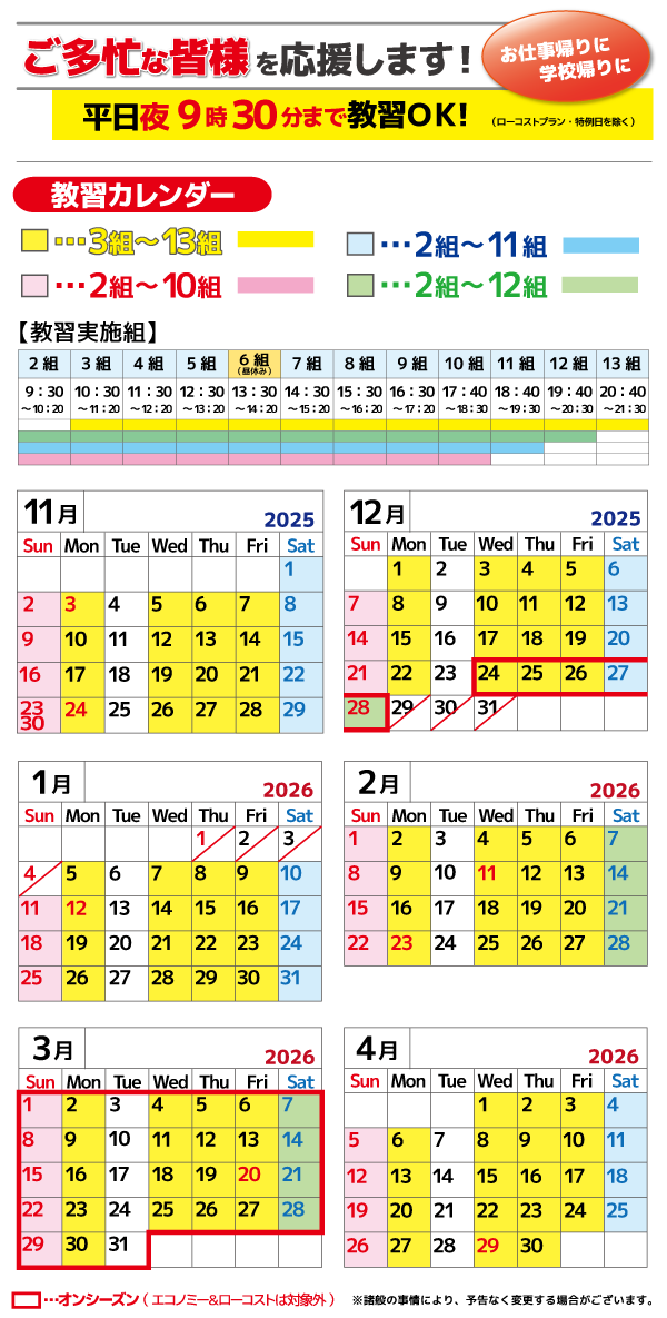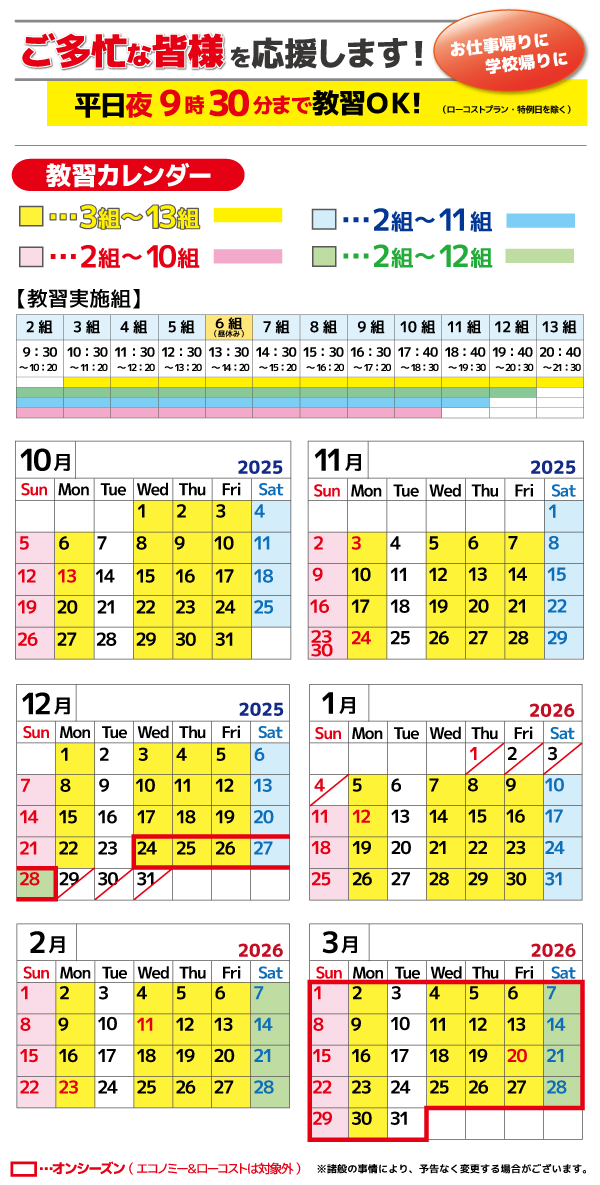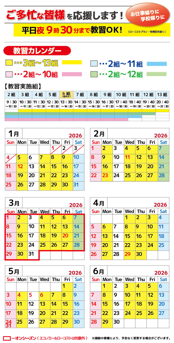 平日夜9:30まで教習